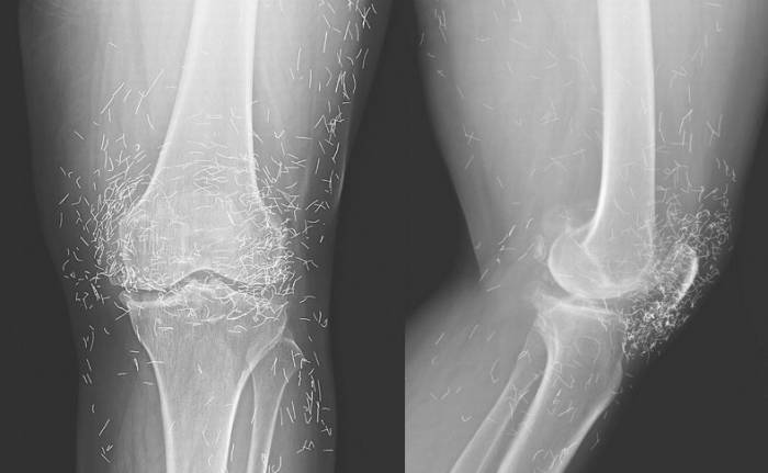 Το παράξενο είναι πως οι γιατροί, εκτός από τα εμφανή σημάδια της αρθρίτιδας, εντόπισαν ένα μεγάλο αριθμό από χρυσές βελονίτσες στα γόνατά της. Η γυναίκα είχε λάβει αγωγή με αναλγητικές ενέσεις και αντιφλεγμονώδη φάρμακα στο παρελθόν, ωστόσο οι πόνοι δεν υποχωρούσαν.
