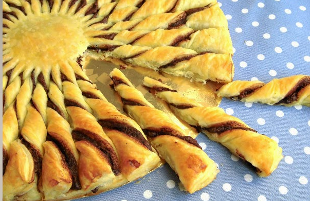Προθερμαίνουμε το φούρνο στους 180 º. Σε ένα ταψί καλυμμένο με χαρτί ψησίματος, τοποθετήστε το πρώτο φύλλο σφολιάτας, αλείψτε με Nutella, αφήνοντας μισό εκατοστό ελεύθερο, γύρω από την άκρη. Τοποθετήστε το δεύτερο φύλλο στην κορυφή.