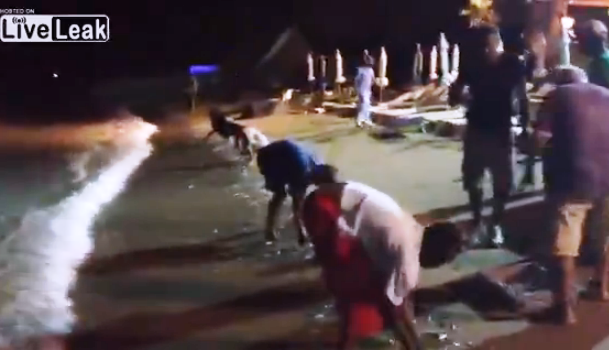 Ενα κοπάδι ψαριών να ξεπηδά στην ακτή της παραλίας της Βάρκιζας αφήνοντας άφωνους όλους του θαμώνες νυχτερινού παραλιακού μαγαζιού οι οποίοι έσπευσαν να βγάλουν μια καλή ψαριά με τα χέρια τους...