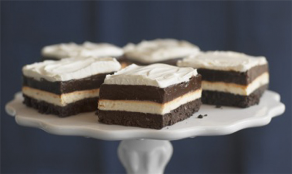 4.Φτιάξτε τις κρέμες στιγμής με το γάλα σύμφωνα με τις οδηγίες της συσκευασίας. Προσθέστε το μείγμα κρέμας σοκολάτας προσεκτικά ομοιόμορφα, με ένα κουτάλι, πάνω από το μείγμα cheesecake.
