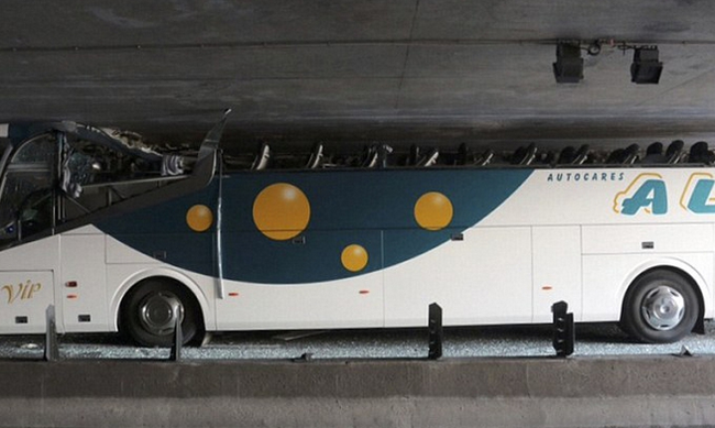 Το ύψους 3.65 μέτρων λεωφορείο εκτελούσε το δρομολόγιο Μπιλμπάο-Άμστερνταμ. Προσεγγίζοντας τούνελ σε μεγάλο αυτοκινητόδρομο λίγο έξω από την πόλη Λιλ, στη Γαλλία, ο οδηγός δεν πρόσεξε τη σχετική σήμανση που ανέφερε ότι το ύψος του τούνελ ήταν 2.60.