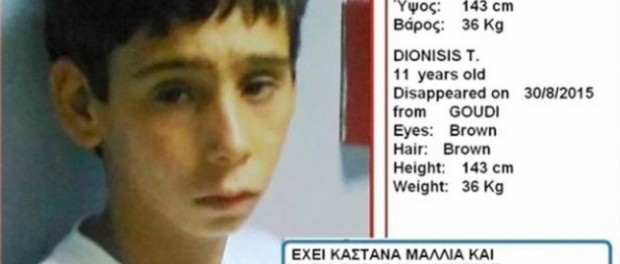 «Στις 30/08/2015, εξαφανίστηκε από το Γενικό Νοσοκομείο Παίδων Αθηνών «Η Αγία Σοφία», όπου νοσηλευόταν από τις 07/08/2015 για κοινωνικούς λόγους, ο Διονύσης Τ. 11 ετών. Ο Διονύσης έχει καστανά μαλλιά και καστανά μάτια. Έχει ύψος 1,43 και βάρος 36 κιλά.