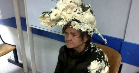 Η γυναίκα της εικόνας φαίνεται πως δεν διάβασε την ετικέτα κι αντί για αφρό, έβαλε στα μαλλιά της πολυουρεθάνη