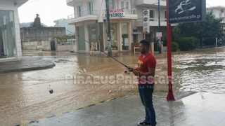 Ποτάμι έγιναν προχθές Κυριακή (11-10-2015) οι δρόμοι στη Σαλαμίνα μετά την ισχυρή βροχόπτωση, με τα νερά να καλύπτουν τα πεζοδρόμια και να θυμίζουν περισσότερο τα κανάλια της Βενετίας παρά τους κεντρικούς δρόμους του νησιού. Μια φωτογραφία που κυκλοφορεί εδώ και λίγες ώρες στο facebook έχει προκαλέσει άφθονο γέλιο στους χρήστες και αποδεικνύει για ακόμα μια φορά πως οι Έλληνες και ειδικά οι κάτοικοι της Σαλαμίνας, δεν χάνουν το χιούμορ τους με τίποτα...