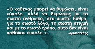 9. Ο καθένας μπορεί να θυμώσει, είναι εύκολο. Αλλά να θυμώσεις με το σωστό άνθρωπο, στο σωστό βαθμό, για το σωστό λόγο, τη σωστή στιγμή και με το σωστό τρόπο, αυτό δεν είναι καθόλου εύκολο.