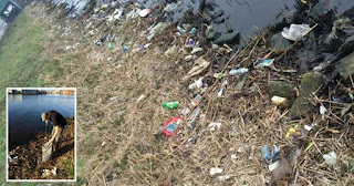 «Ένα τμήμα της όχθης του ποταμού καλύπτεται με πλαστικά μπουκάλια αλλά και άλλα (κυρίως πλαστικά) σκουπίδια.»