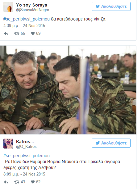 Μάλιστα στο Twitter έχει δημιουργηθεί και το σχετικό hashtag #se_periptwsi_polemou