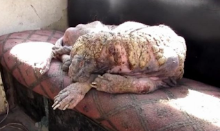 Όταν έφτασε στο καταφύγιο ζώων, φοβόταν πάρα πολύ. Οι διασώστες όμως δεν τα παράτησαν. Της έβαλαν ειδική κρέμα για να μαλακώσει το δέρμα της και συνέχισαν να αφαιρούν τα κομμάτια με νεκρό δέρμα.