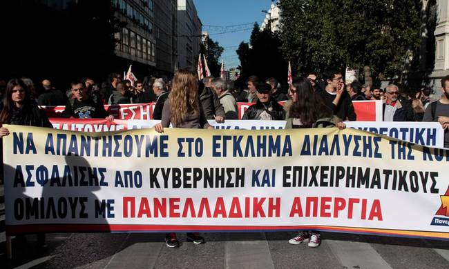 Η αστυνομία είχε παρατάξει κλούβες κατά μήκος του δρόμου, με στόχο να ανακόψει την πορεία διαμαρτυρίας του ΠΑΜΕ για το ασφαλιστικό.