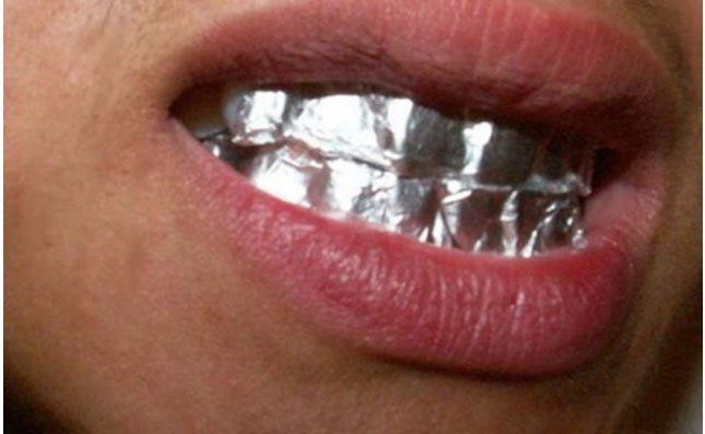 Ανακατέψτε λίγη μαγειρική σόδα με μια συνηθισμένη πάστα για τα δόντια. Πάρτε αλουμινόχαρτο και φτιάξτε το κατάλληλο σχήμα που θα εφαρμόζει σωστά στα δόντια σας. Εφαρμόστε την πάστα πρώτα και προσθέστε το φύλλο μετά και αφήστε το για 1 ώρα.