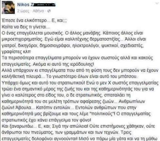 Σας επισυνάπτω ανακοίνωση του υποφαινόμενου στ Facebook που έλαβε χωρα προ δυο ωρών και προσβάλλει-περιβριζει τους νεκρούς -πεσόντες αξκος του ΠΝ .