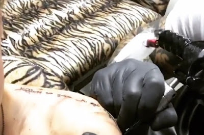 Κόλλησε το γκάζι... Και εγώ σ' αγαπώ λέει το τατουάζ που χτύπησε πριν λίγη ώρα προς τιμήν του Παντελή Παντελίδη η τραγουδίστρια...