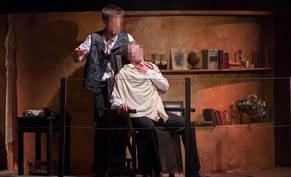 Όταν όμως ήρθε η στιγμή που ο Σουίνι Τόντ άρχισε να κόβει τον λαιμό των πελατών του, τότε όλα άλλαξαν… Παντού πετάχτηκαν αίματα… όμως αυτό δεν ήταν στα πλαίσια της παράστασης!