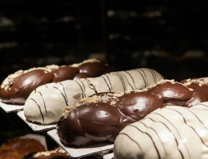 Κόβουμε σε κομμάτια και πλάθουμε τα τσουρέκια τοποθετούμε σε λαδόκολλα αφού φουσκώσουν πάλι τα ψήνουμε στους 170°C πάνω κάτω αντίσταση μέχρι να ροδίσουν και να έχουν πάρει και απο κάτω (30-40λεπτά). Αν τα πατήσουμε με το δάκτυλό μας επανέρχεται η ζύμη δεν βουλιάζει.