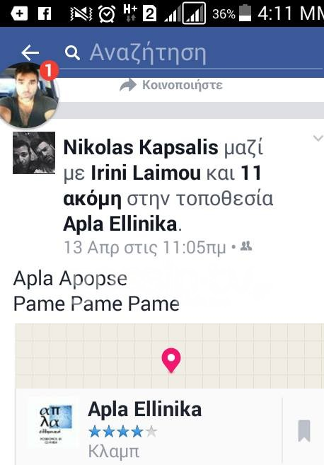 Μάλιστα χθές εμφανίστηκε για πρώτη φορά συνοδευόμενη απο νεαρό άντρα στο στέκι όπου σύχναζε παλιότερα με τον Παντελή Παντελίδη. Και αναφέρομαι στο στέκι που πήγαν και την μοιραία εκείνη μέρα πρίν συμβεί το κακό.