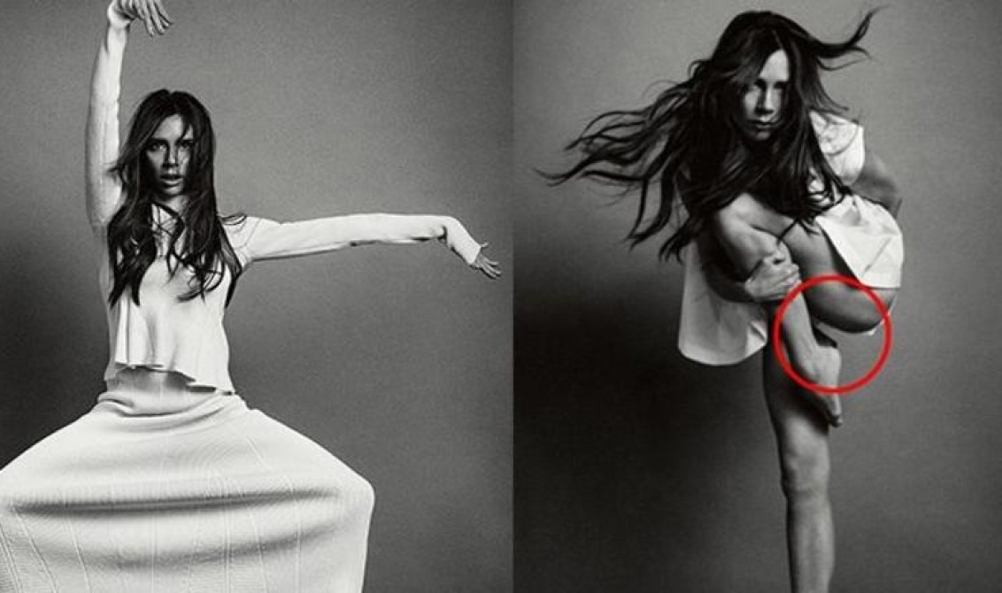 Στην πραγματικότητα μιλάμε για πραγματική γκάφα, αφού το photoshop εξαφάνισε ολόκληρα κομμάτια από το κορμί της βρετανής σχεδιάστριας μόδας.