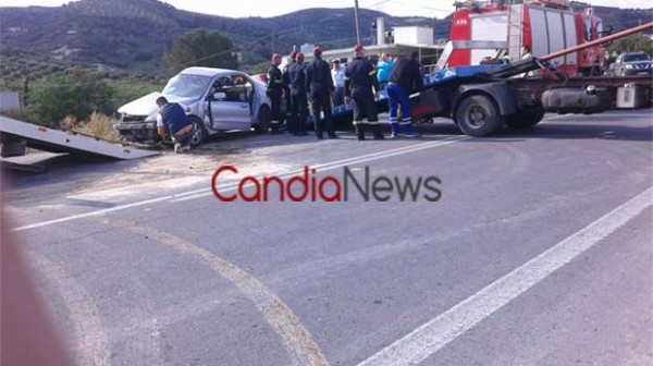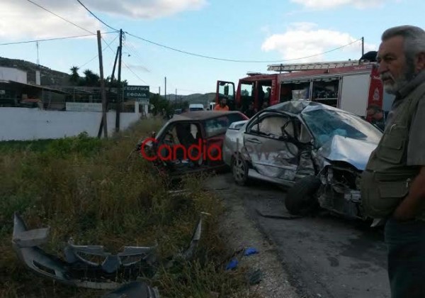 Δυο αυτοκινήτων που σημειώθηκε στην εθνική οδό Ηρακλείου Μοιρών στο ύψος των Αθανάτων. Σύμφωνα με πληροφορίες στο ένα αυτοκίνητο επέβαιναν μια 70χρονη γυναίκα και 26χρονη κόρη της ενώ στο άλλο ένας 50χρονος άνδρας. Η σύγκρουση σημειώθηκε κάτω από άγνωστες για την ώρα συνθήκες ωστόσο πιθανολογείται ότι ένα από τα οχήματα επιχείρησε αναστροφή στο δρόμο. Αμέσως σήμανε συναγερμός στις αρχές και στο σημείο της νέας τραγωδίας έσπευσε δύναμη της Πυροσβεστικής Υπηρεσίας Ηρακλείου με 7 πυροσβέστες και δύο οχήματα, άνδρες της Τροχαίας αλλά και τρία ασθενοφόρα του ΕΚΑΒ.