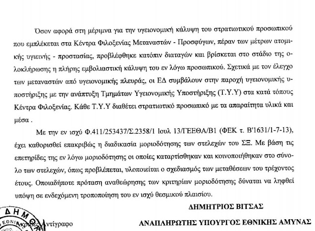 Στην απάντησή του ο κ. Βίτσας αναφέρει:
